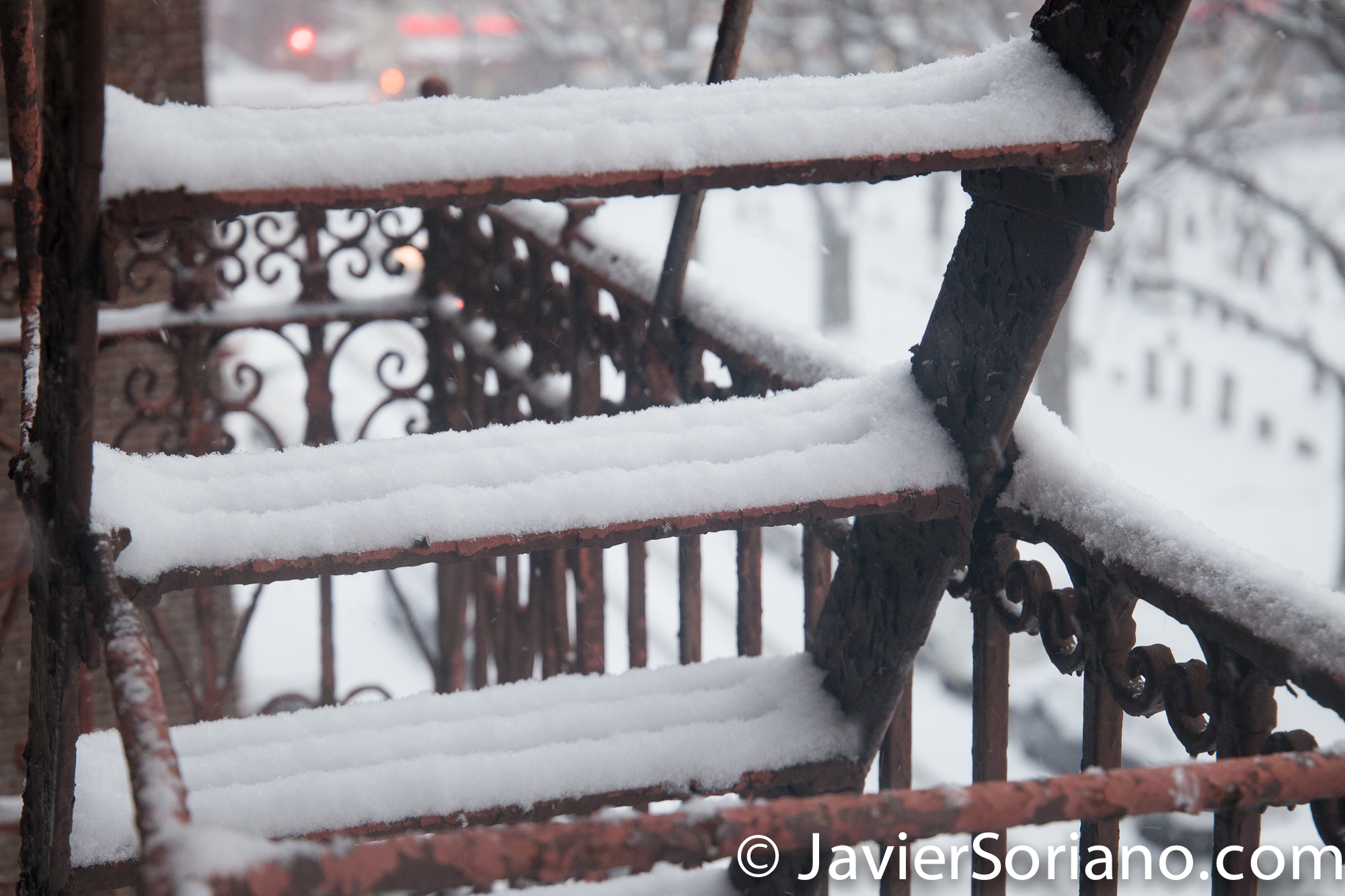 1/7/2017 - It's snowing in NYC. The fire stairs are covered with snow. (Está nevando en Nueva York. Las escaleras de incendios están cubiertas de nieve.) Photo by Javier Soriano/www.JavierSoriano.com