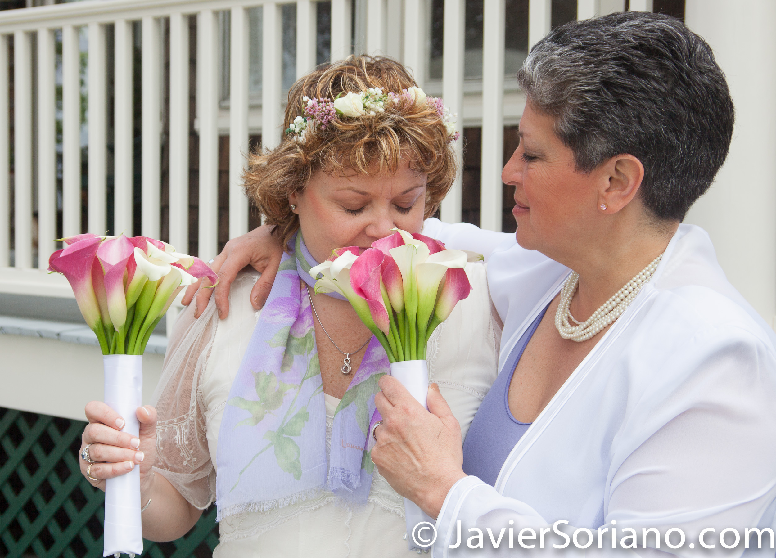 A lesbian couple on their wedding day.