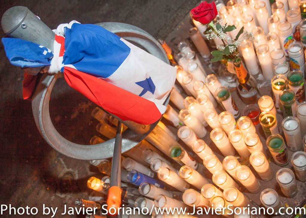 On Sunday, September 20, family members and friends of Yasser Julio had a vigil. Candles, flowers, Panamanian flags, champagne and a broom are in the scene of the shooting.