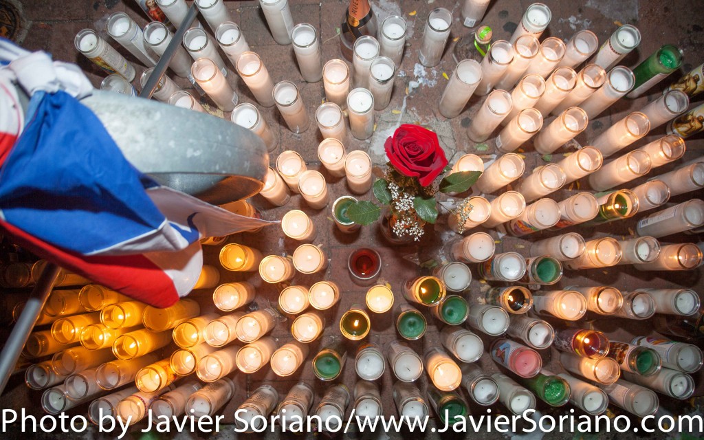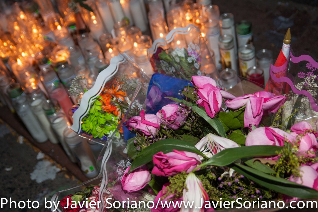 - 9/23/2015, Flatbush, NYC - Candles for a Black/Latino man killed on 9/19/2015. Photo by Javier Soriano/http://www.JavierSoriano.com/