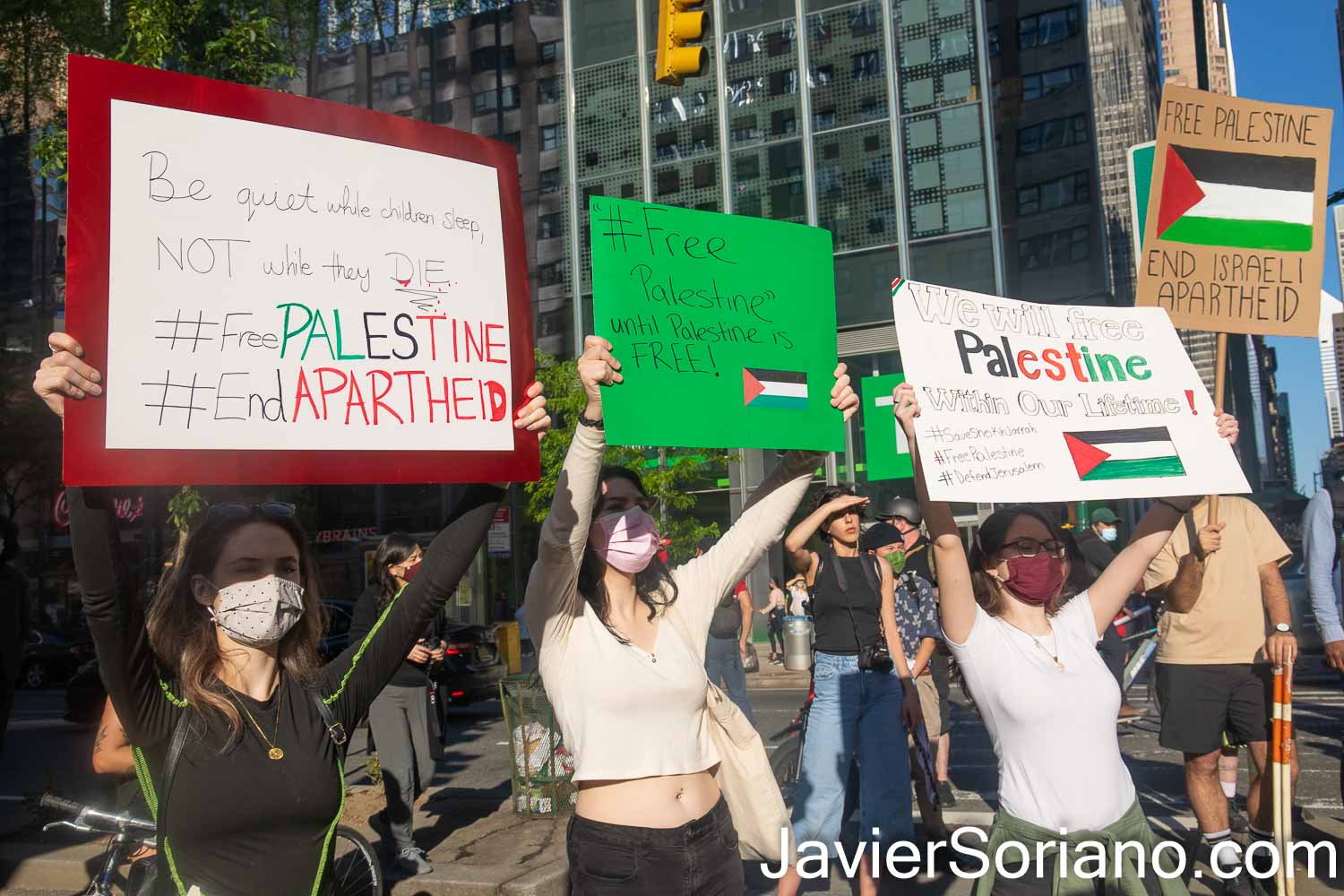 The organizers of the demonstration on Tuesday, May 11, 2021 were: NY4Palestine, Palestinian Youth Movement (PYM), Al-Awda NY: The Palestine Right to Return Coalition, Samidoun Palestinian Prisoner Solidarity Network and Within our Lifetime • United for Palestine.